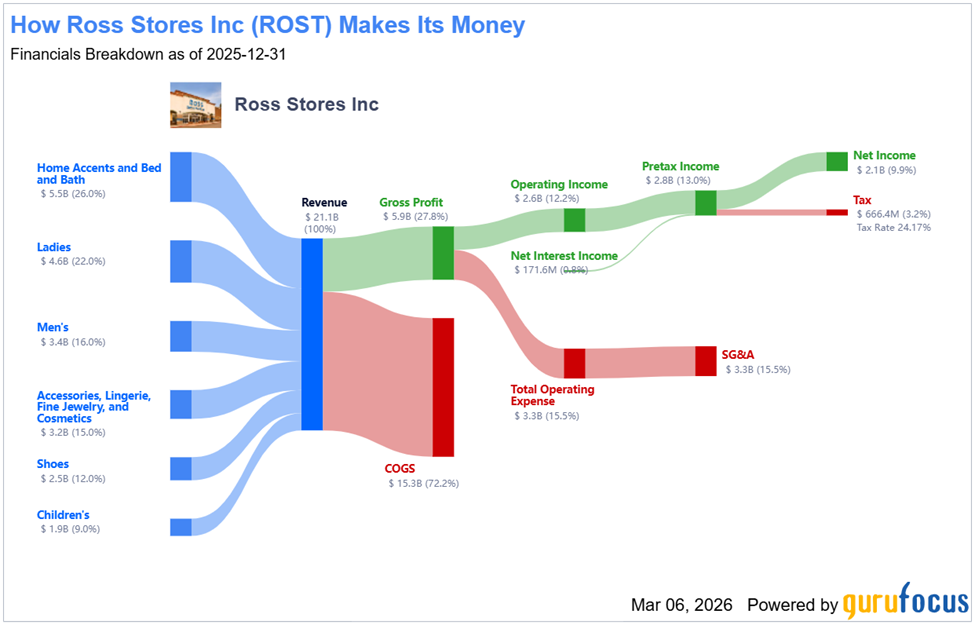 The valuation at current prices indicates that the market is still viewing Ross as a "quality" retailer: trailing P/E is roughly 30.9x, EV/Sales is roughly 3.1x, and EV/EBITDA is roughly 21.6x. The market pays for consistent execution—positive comps, managed inventory, and robust margins—when a retailer trades at a premium multiple.