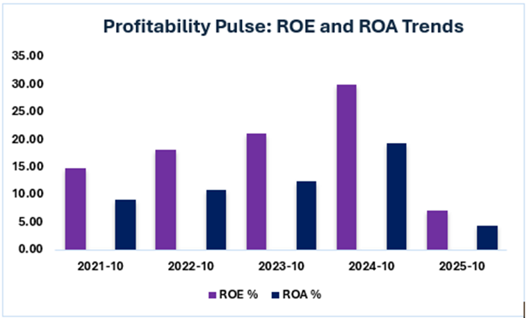 In 2025, the company's ROA declined sharply from its 2024 peak to a low level, following the massive expansion of its asset base after the Ansys acquisition. As mentioned above, the company's GAAP net income increased noticeably, leading to a significant increase in its ROA in 2024. The scenario was the same for ROE, which increased due to higher net income, a lower equity base, and the company's high efficiency in FY 2024.